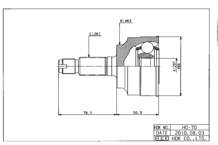ШРУС наружный / AT правый /левый HDK для Honda Stream 2006-2012 RN7 RN8 RN9 R18A R20A; HO-070; (TG-4470) 44014SMB010 44305SMB010 44306SMB010